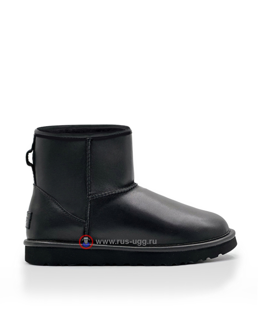 Кожаные угги мини UGG CLASSIC MINI LEATHER Black чёрного цвета.