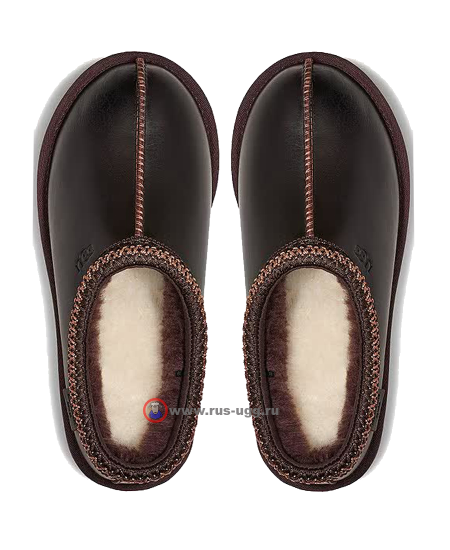 Классические мокасины UGG TASMAN SLIPPER Leather Regen Ironwood шоколадного цвета.