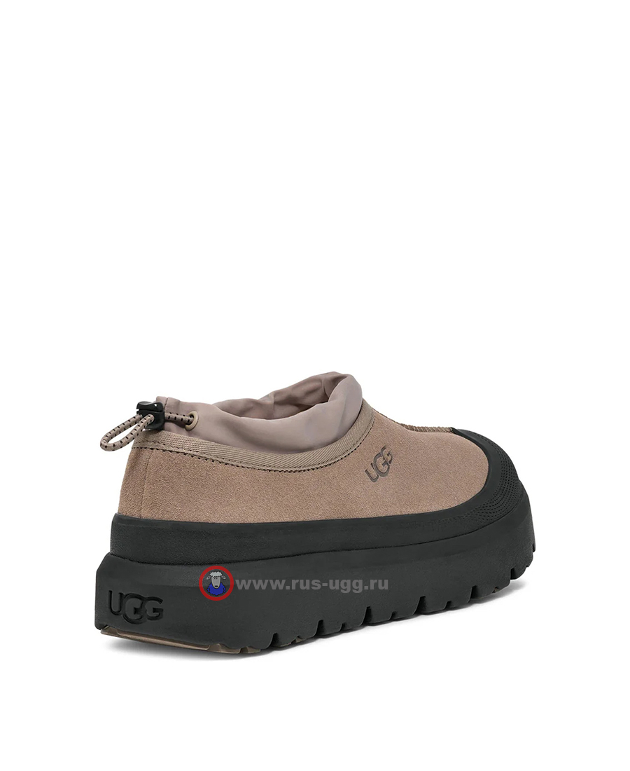 Непромокаемые мокасины UGG TASMAN WEATHER HYBRID SLIPPER каштанового цвета с белыми галошами.