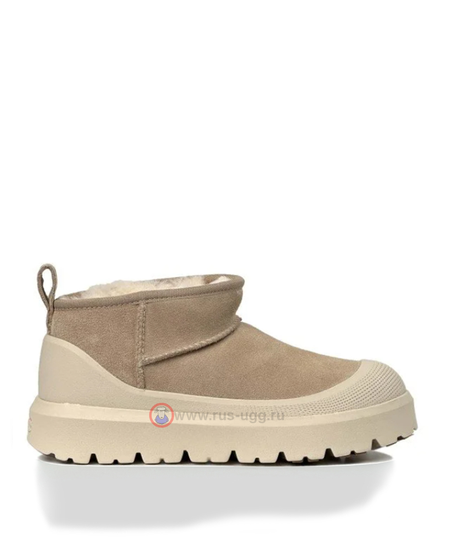 Непромокаемые мокасины UGG ULTRA MINI HYBRID песочного цвета, с галошами.