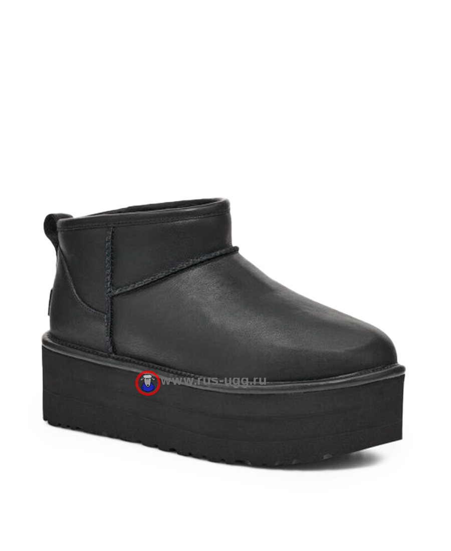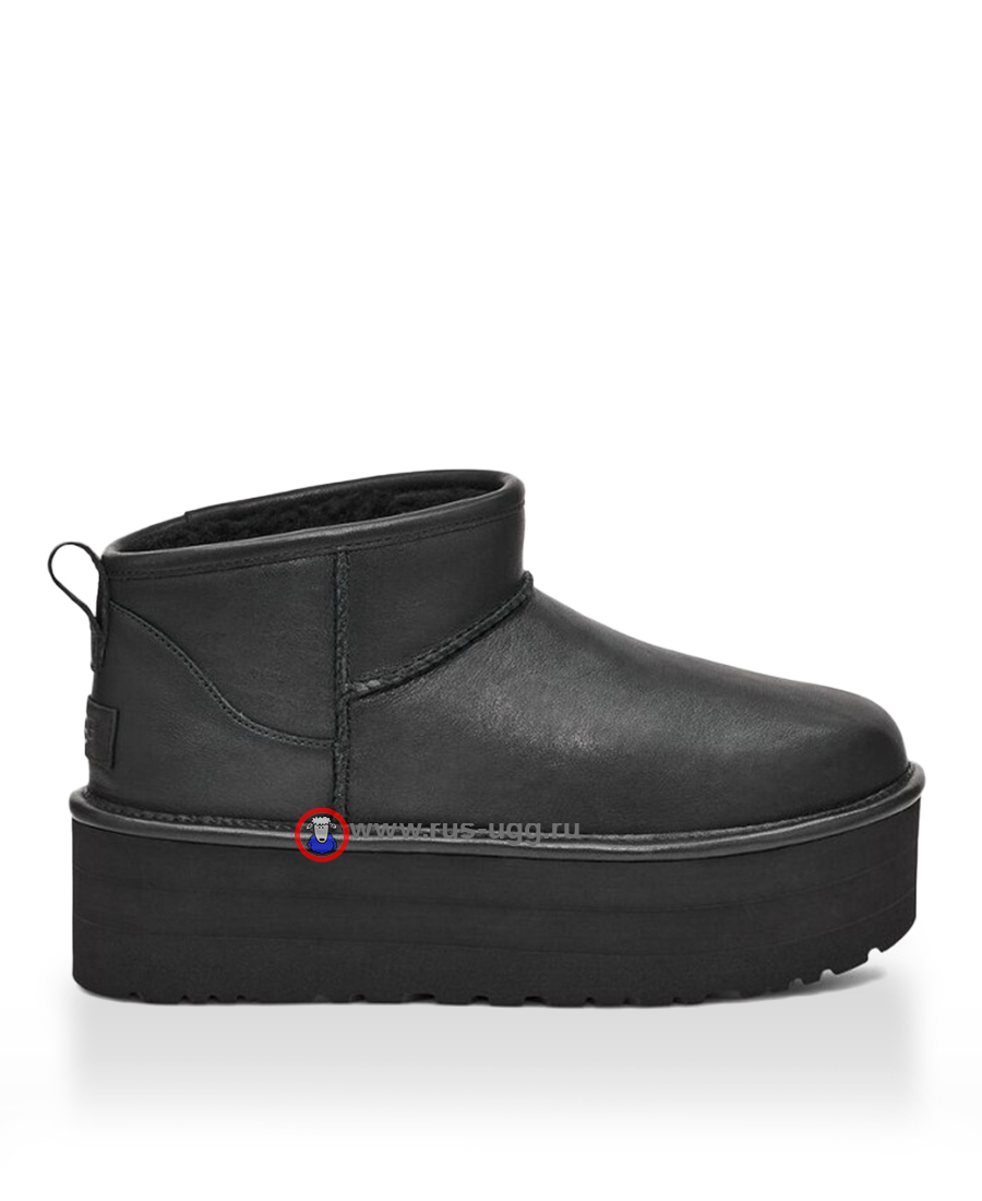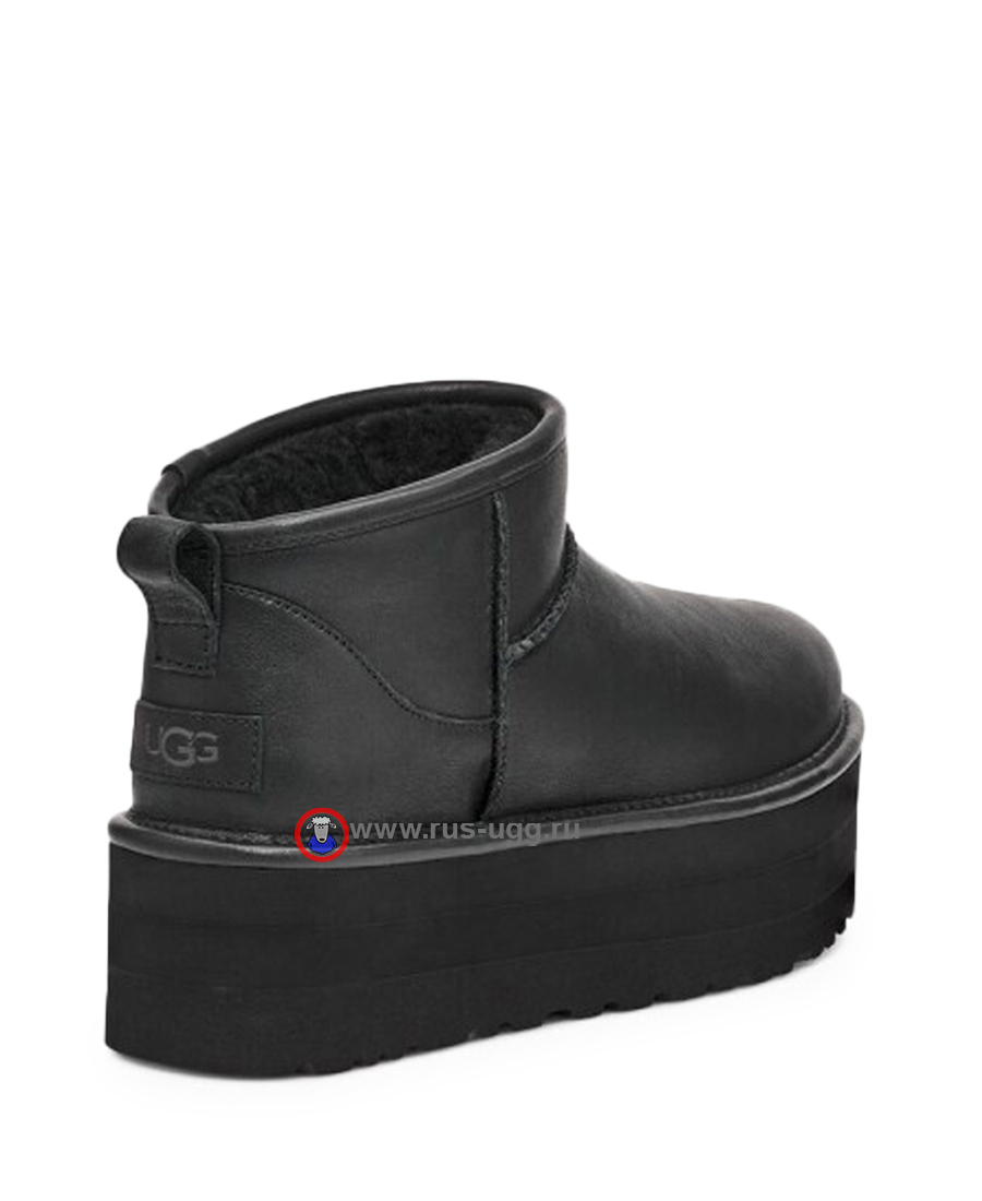 Кожаные угги на платформе UGG ULTRA MINI PLATFORM LEATHER чёрного цвета.
